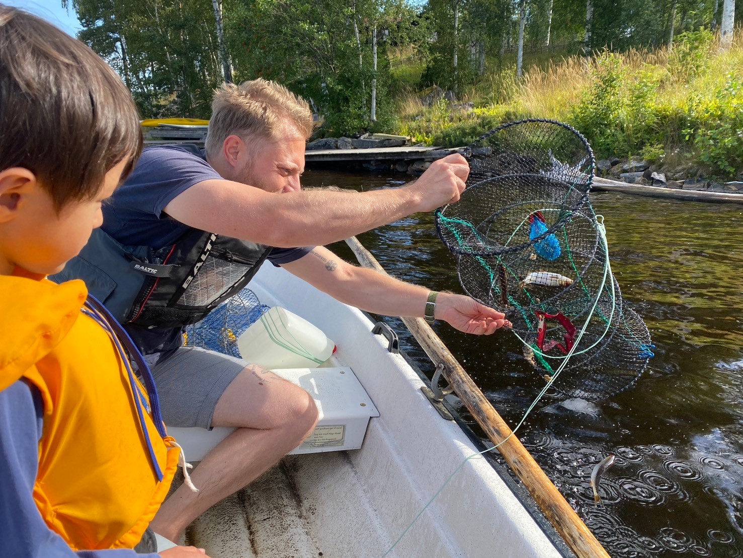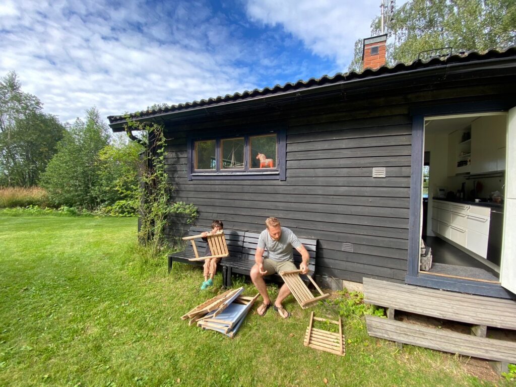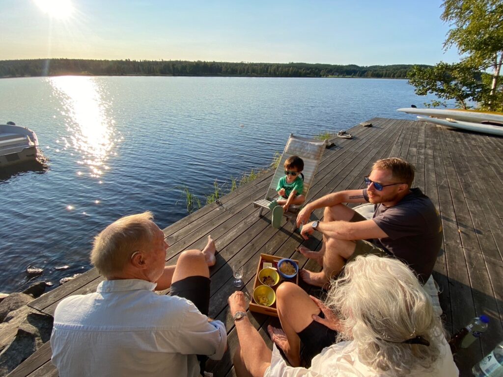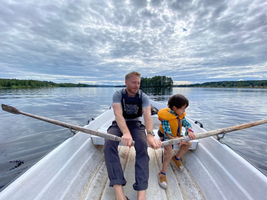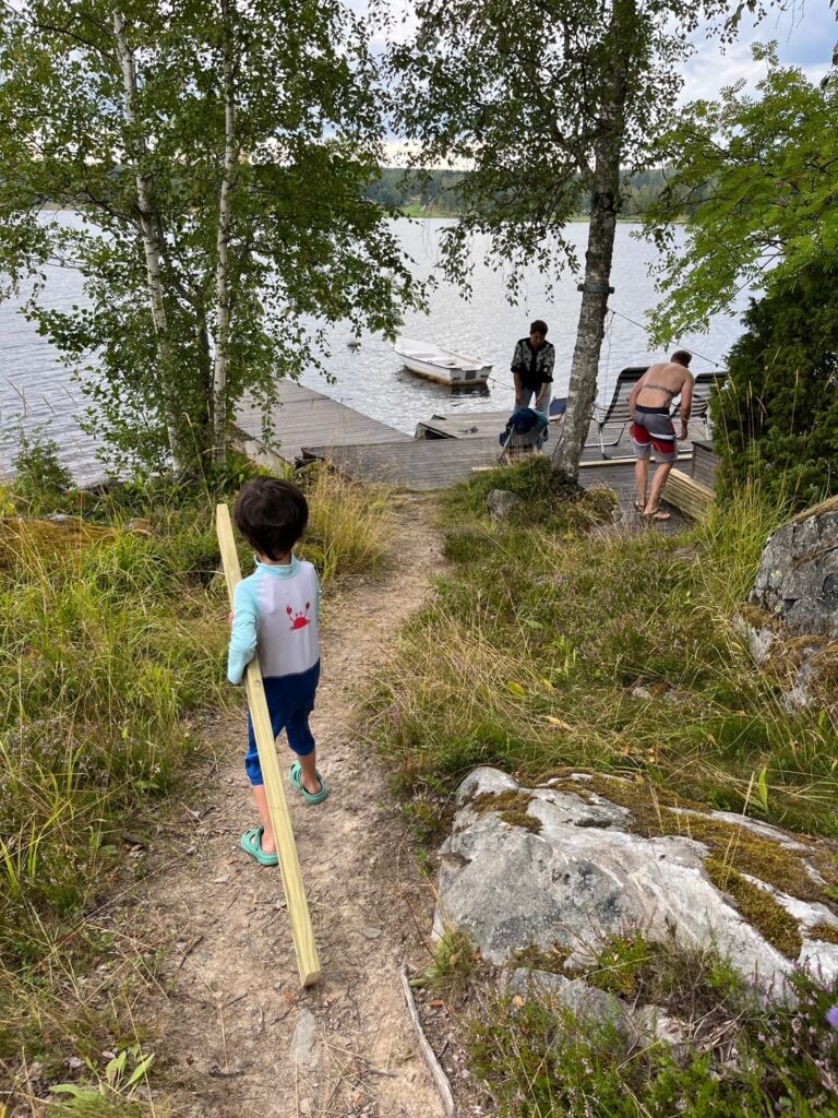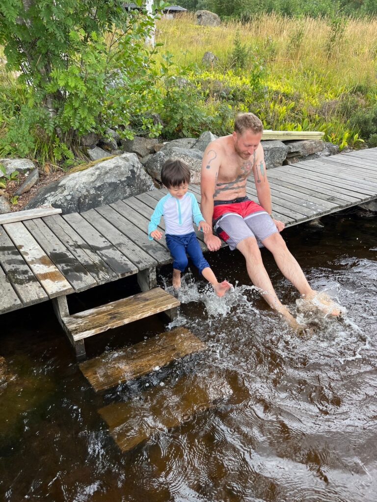 My family is fortunate enough to have a cabin by a lake out in the woods. When I was young I always enjoyed spending time there; swimming in the lake, rowing the boat, or going going for a stroll in the woods. It’s not too far from my parent’s house so we never stayed there for more than a couple of days in a row, instead opting for shorter but more frequent visits. It is however a very long way from my family’s house in Taiwan, so when we finally did go back to Sweden this summer, we thought it would be nice to stay for a longer time. That way me, my wife and our son would have plenty of time to to enjoy the things we wanted to do without feeling rushed. That turned out to be a great decision. We did all those things that you’re supposed to do during a summer in the cabin. We went mushroom picking in the forest, we went swimming in the lake; we rowed out to the little island just to have a look around; we picked berries in the garden and helped repair the broken jetty; we went fishing for crayfish but only caught a few; we had our meals outside and enjoyed the late sunset, and at the end of each day, my dad lit a fire in the fireplace so he and his grandson could sit a while watching the flames. I don’t think I need to say much more, from now on the photos can do the talking.